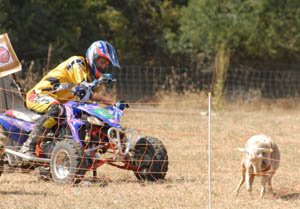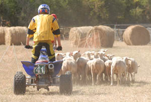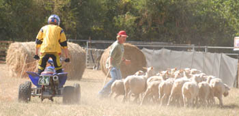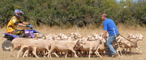 Thomas était venu de l'Allier avec son quad. Ce véhicule s'avère moins dangereux pour les bergers et les animaux car plus petit qu'une voiture et chaussé de pneus à basse pression sans danger si on roule sur une patte ;