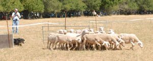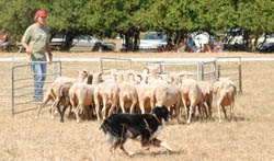 Puis immobilisation dans le carré, Franck cherche la rubalise avant d'attraper la brebis.